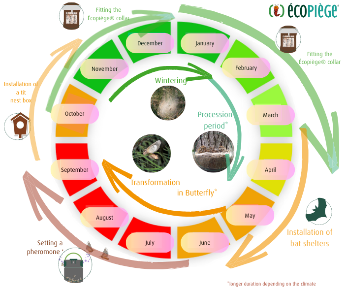 Since 2014, the lags have become more and more frequent in many regions. The processions therefore extend in the areas concerned from the month of October to the month of April, which considerably complicates control. The risk period has also greatly increased.